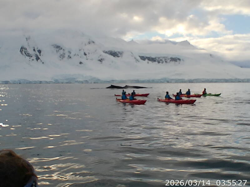 Woke early because we had an 8.00 explorer cruise. It takes half and hour to get into our cold gear. Went our into the zodiac. It was very very cold with a bit of a wind and a bit damp. Saw some whales and a leopard seal on an ice berg. It was a very good cruise then back for coffee. All the dinning rooms were closed and it was too early for coffee in the bar as it wasn't open. Oh well we just sit and watch the world go by till 10.00. That is the only problem, there is nowhere to get a meal outside set times. So more photos.